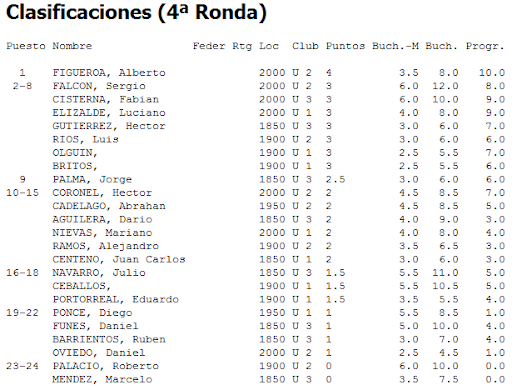 Luego de cuatro rondas, Alberto Figueroa es el único líder con puntaje perfecto, y aunque se perfila como candidato, lo siguen de cerca siete escoltas a tan solo un punto de distancia.